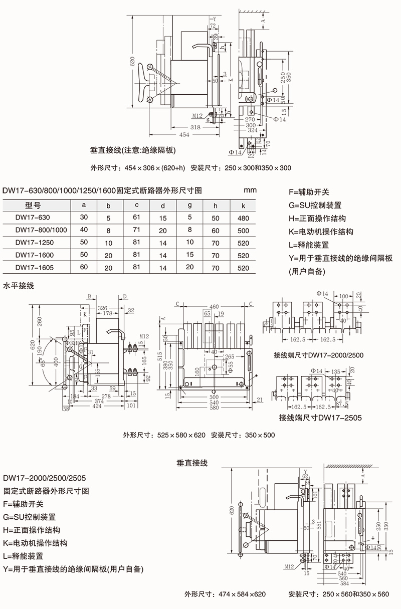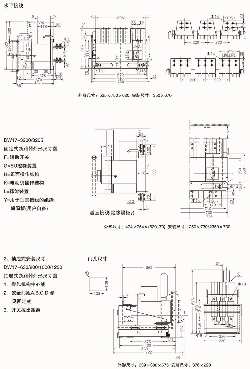 5、安装条件:断路器应按说明书成套安装或户内单独安装,与垂直面的倾斜度不超过5°。