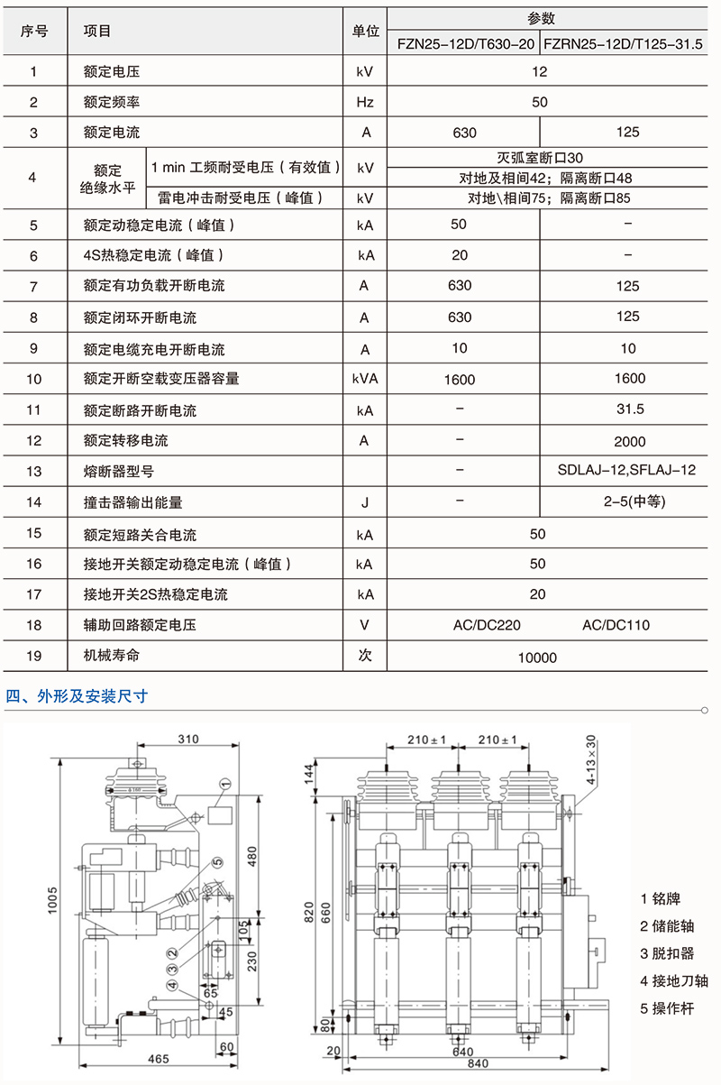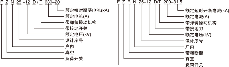 FZN25 -12D/630 - 20型交流高压真空负荷开关是三相交流50Hz,额定电压12KV的户内装置,适用于工矿、企业、配电所及变电站等场合,作为电气设施的保护和控制,用于分合负荷电流、闭环电流、空载变压器和电缆充电电流。配有手动和电动机操作机构,便于实现电力系统的三遥控要求。 FZRN25 - 12D/T200 - 31.5型交流高压真空负荷开关-熔断器组合电器是三相交流50Hz,额定电压12kV的户内装置,适用于工矿、企业、配电所及变电站等场合,作负荷控制和短路保护之用。配装的接地开关,可以承受短路电流。操动机构可手动和电动,便于实现电力系统的三遥控要求。 FZN25- 12D、FZRN25 - 12D型负荷开关和组合电器适用于三相环网或终端供电的市区配电站和工业用电设备中,作负荷控制和短路保护用。由于组合电器对变压器等电器设备的保护作用比断路器更可靠,更经济,特别适用于环网、双辐射供电单元和箱式变电站。