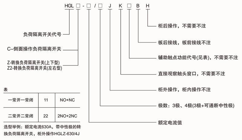 根据需要可配装两组辅助触点。电气性能与机械性能和HGL-125~1600A电气性能与机械性能相对应。可提供桥式连接导体接通开关的进线端或出线端。