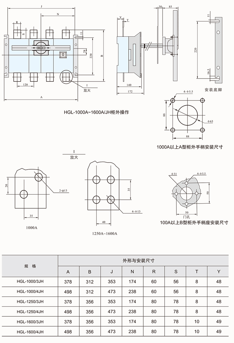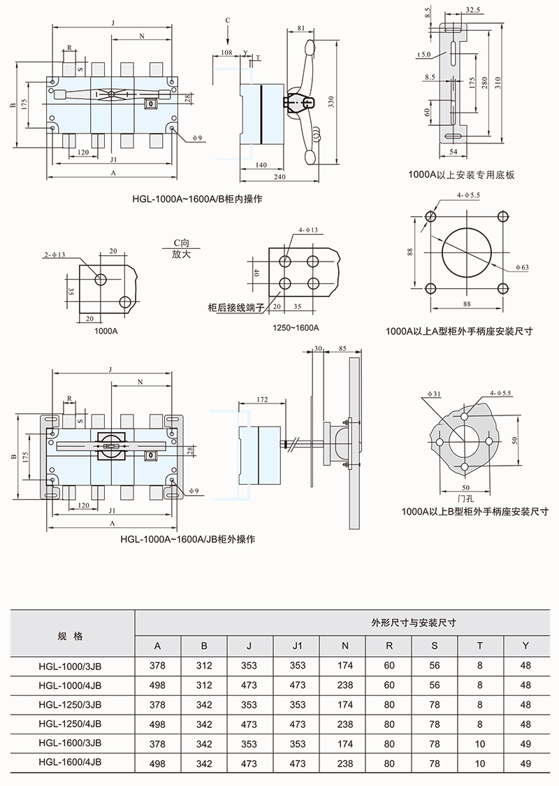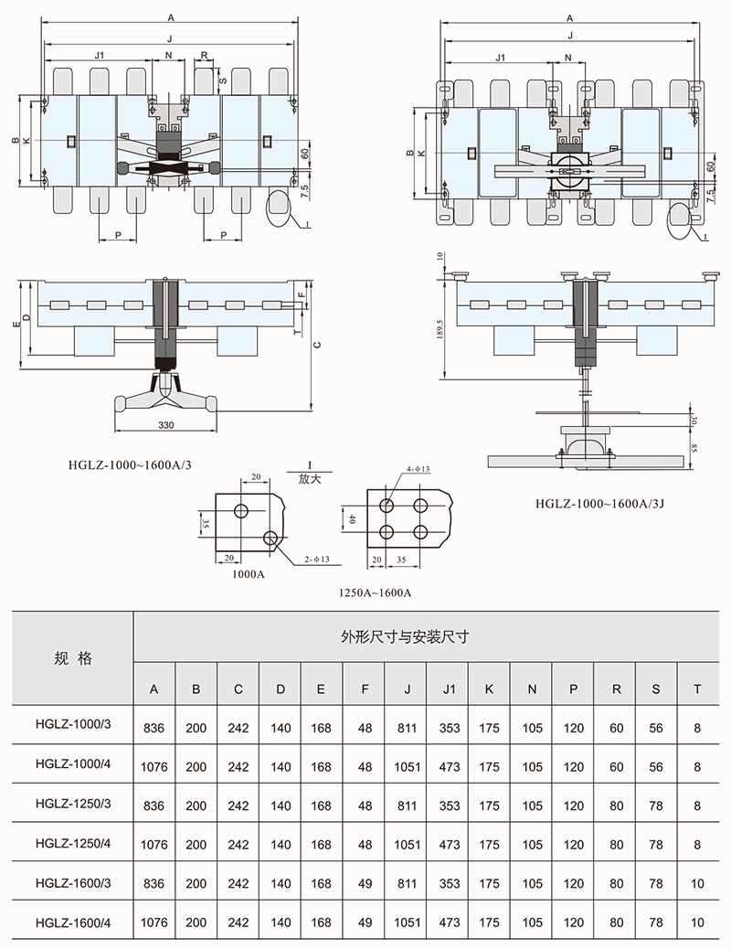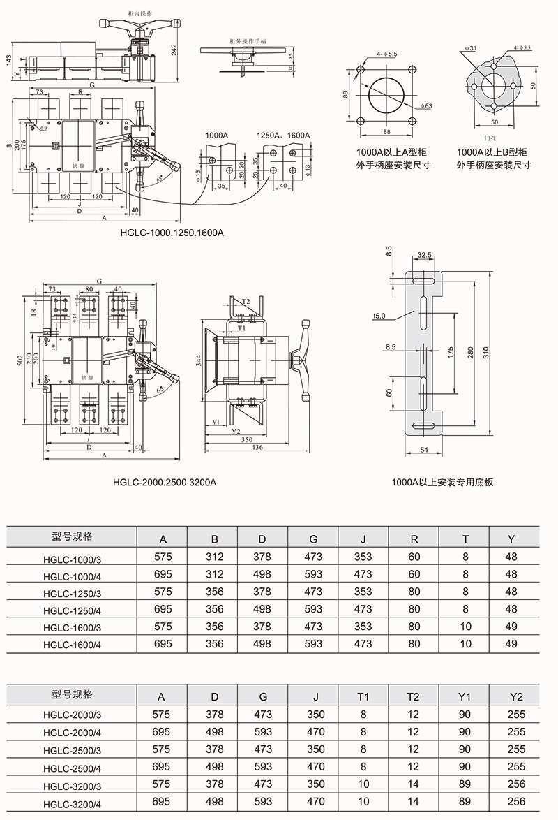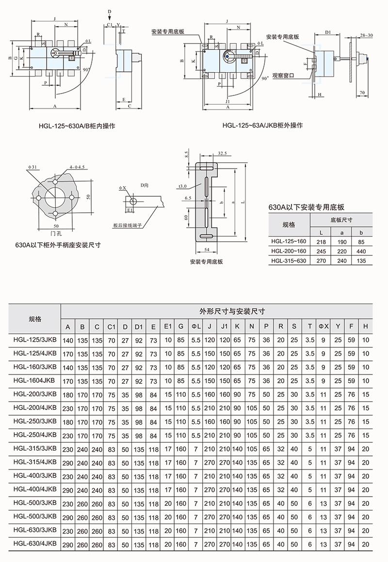 HGLZ-125~1600A适用于两条低压电路切换或者两个负载设备的转换或安全隔离等。柜内操作:手柄直接安装在开关上。柜外操作:手柄安装在配电柜柜门外。