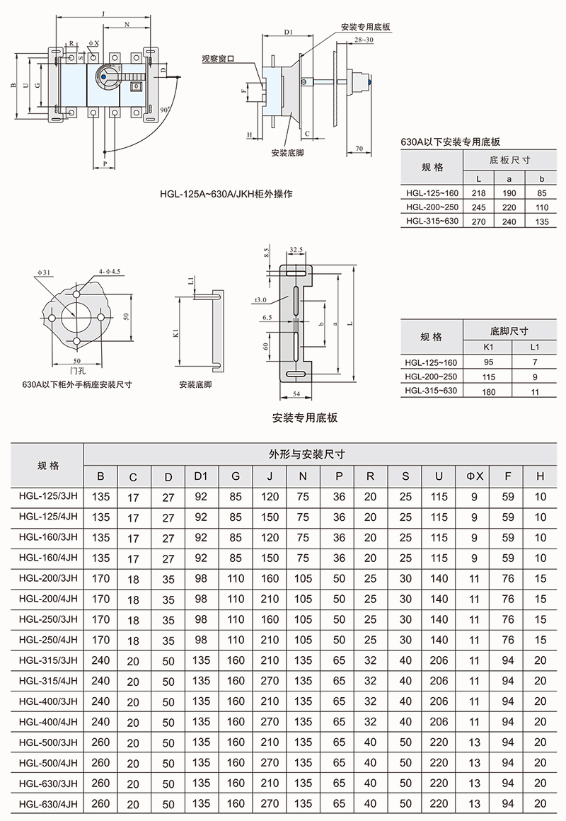 电气性能与机械性能和HGL-125~1600A电气性能与机械性能相对应。