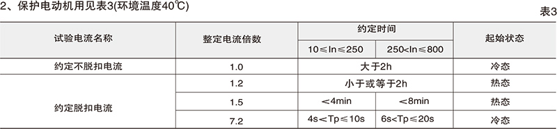 3、保护电动机用电磁脱扣器动作电流为12In士20%(A)
