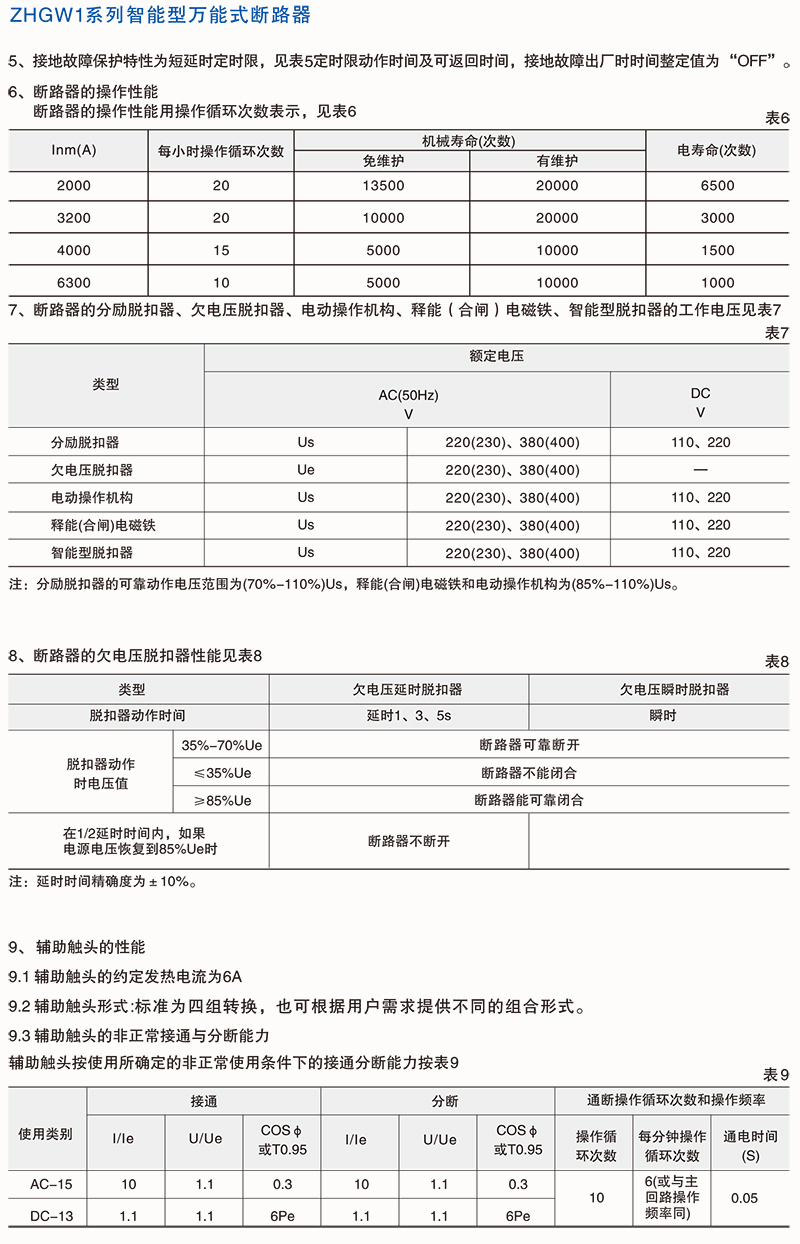 ZHGW1系列智能型万能式断路器(以下简称断路器),适用于交流50Hz,额定电压至660V(690V)及以下,额定电流630A~6300A的配电网络中,用来分配电能和保护线路及电源设备免受过载、欠电压、短路、单相接地等故障的危害。