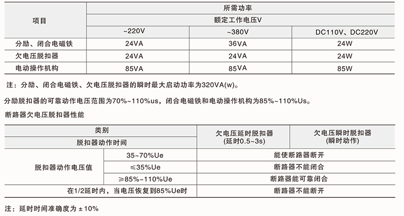 具有欠电压保护功能,当电路电压低于其设定值,欠电压脱扣器可自动瞬时或延时将断路器断开。