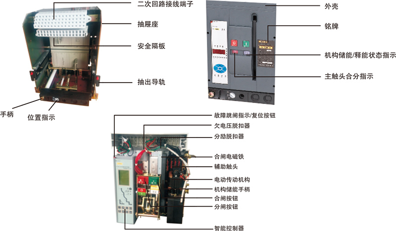 抽屉式断路器还具有机械联锁装置,所以断路器只有在“接通”和“试验”位置时才能闭合,而在其他位置时断路不能正常闭合。