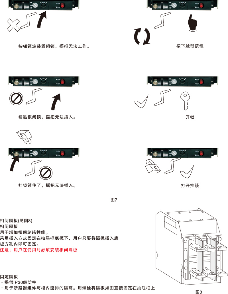 用于断路器与配电柜门的联锁,避免断路器在' 运行”位置时柜门打开。
