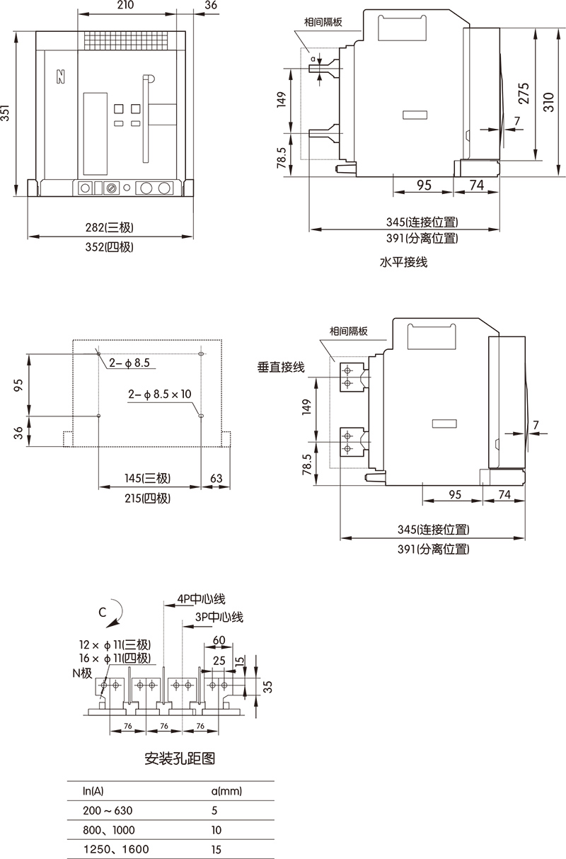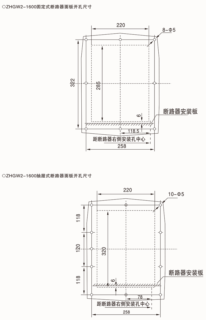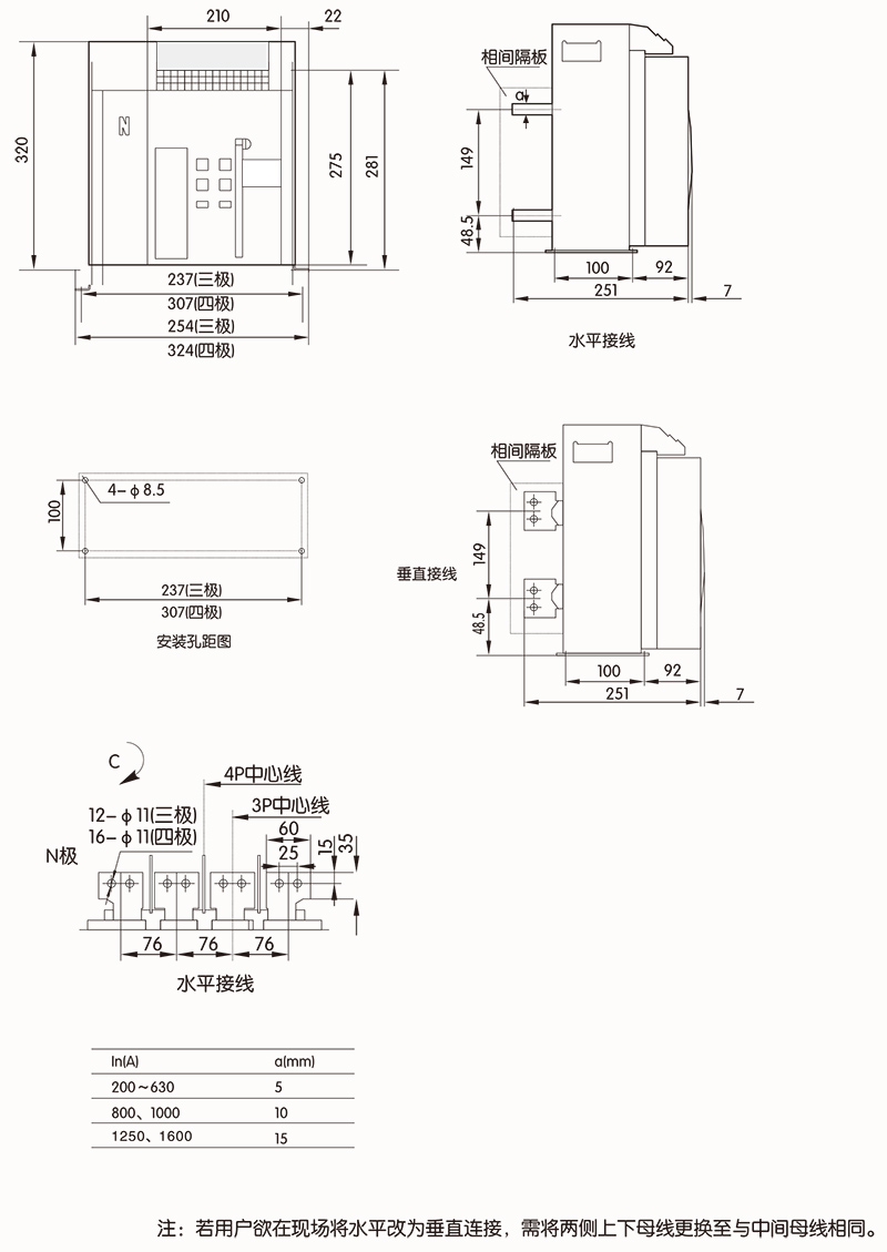 (注:外置互感器由本厂配套提供)外形及安装尺寸见图10~图12断路器的安全间距。见图13